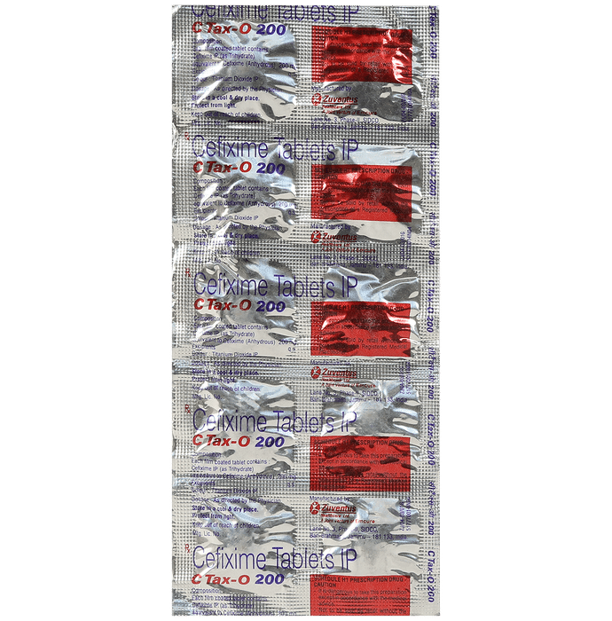 description:C Tax-O 200mg Tablet is an antibiotic belonging that is used to treat a variety of bacterial infections. It is effective in infections of the respiratory tract (eg. pneumonia), urinary tract, ear, nasal sinus, throat, and some sexually transmitted diseases. C Tax-O 200mg Tablet should be given under the supervision of a doctor or health professional. Use it regularly at evenly spaced intervals as per the schedule prescribed by your doctor. Using it at the same time every day will help you remember to take it. The dose will depend on what you are being treated for, but you should always complete the full course of this antibiotic as prescribed by your doctor. Do not stop taking it until you have finished, even when you feel better. If you stop taking it early, some bacteria may survive and the infection may come back or worsen. It will not work for viral infections such as flu or common cold. Using any antibiotic when you do not need it can make it less effective for future infections.The most common side effects of this medicine include nausea, stomach pain, indigestion, and diarrhea. These are usually mild but let your doctor know if they bother you or do not go away.Before taking it, you should let your doctor know if you are allergic to any antibiotics or have any kidney or liver problems. You should also let your healthcare team know all other medicines you are taking as they may affect, or be affected by this medicine. This medicine is generally regarded as safe to use during pregnancy and breastfeeding if prescribed by a doctor.