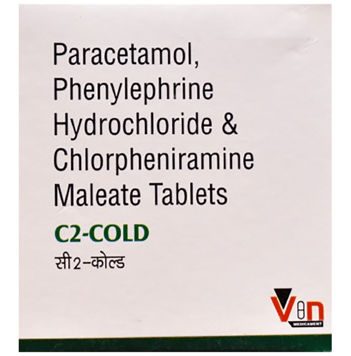 In Treatment of Common cold C2-Cold Tablet is a combination medicine that effectively relieves symptoms of common cold such as blocked nose, runny nose, watery eyes, sneezing, and congestion or stuffiness. It helps to loosen thick mucus, making it easier to cough out. This makes it easier for air to move in and out. It shrinks the blood vessels and provides rapid relief that lasts for several hours.u003cbr>u003cbr>C2-Cold Tablet usually starts to work within a few minutes and the effects can last up to several hours. Take it as prescribed by the doctor. Do not stop using it unless you are advised to by your doctor. Taking this medicine enables you to live your life more freely without worrying so much about things that set off your symptoms.