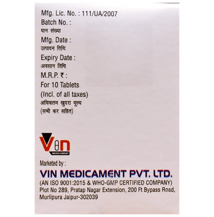 Manufacturer details:,                                                                     Marketer details:Vin Medicament Pvt Ltd | Ground floor , plot no.9A, Vikas nagar A, 200 ft bypass dadim ka phatak , jaipur 302039, rajastha, india, mobile no:-7891620796