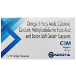 Marketer:Ekesha Lifesciences Private Limited,Composition:Calcitriol (0.25mcg) + Calcium Carbonate (500mg) + Omega-3 fatty acid (150mg) + Methylcobalamin (1500mcg) + Folic Acid (400mcg) + Boron (1.5mg), medicine_typedrugs,Packaging Detail:strip of 10 soft gelatin capsules,          Package:Strip,Qty:10,Product Form:Soft Gelatin Capsule, prescription_required:Prescription Required,primary_use: