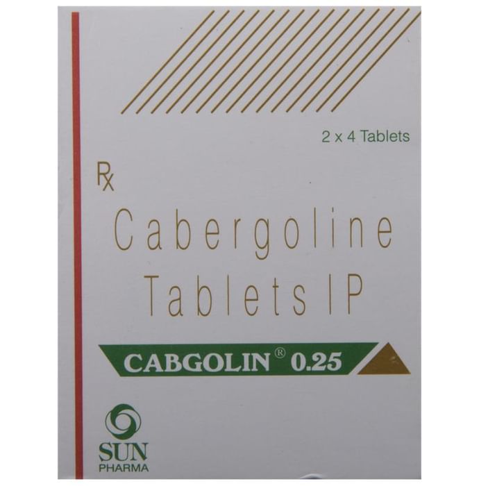 Marketer:Sun Pharmaceutical Industries Ltd,Composition:Cabergoline (0.25mg), medicine_typedrugs,Packaging Detail:strip of 4 tablets,          Package:Strip,Qty:4,Product Form:Tablet, prescription_required:Prescription Required,primary_use: