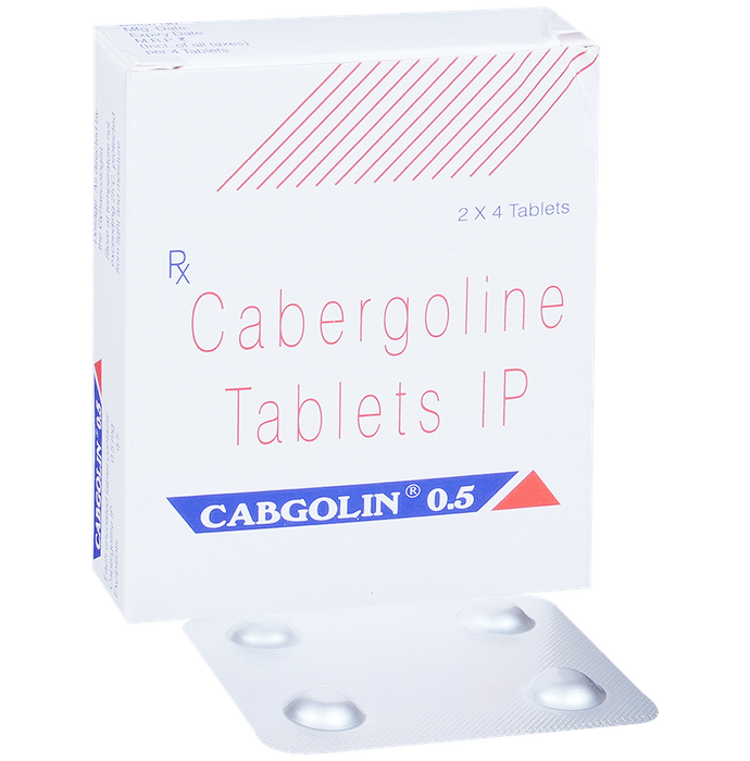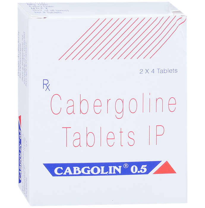 description:Cabgolin 0.5 Tablet is a dopamine agonist. It is used for the treatment of a high level of prolactin. It is also helpful in stopping breast milk production in cases of stillbirth, abortion, or miscarriage. Cabgolin 0.5 Tablet should be taken with food, but take it at the same time to get the most benefit. It should be taken as your doctor’s advice. The dose and how often you take it depends on what you are taking it for. Your doctor will decide how much you need to improve your symptoms. Swallow the tablets whole with a drink of water. You should take this medicine for as long as it is prescribed for you.The most common side effects of this medicine include nausea, headache, dizziness, and low blood pressure. If these bother you or appear serious, let your doctor know. There may be ways of reducing or preventing them. To overcome dizziness, you must avoid driving or rise slowly from sitting or lying position.Before taking this medicine, tell your doctor if you have ever had high blood pressure after birth, or had heart disease. Tell your doctor if you are pregnant, planning pregnancy, or breastfeeding. Your doctor should also know about all other medicines you are taking as many of these may make this medicine less effective or change the way it works. Your doctor may check blood pressure regularly while taking this medicine.