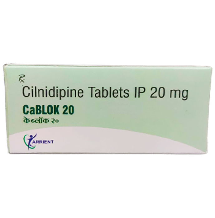 description:Cablok 20 Tablet is a medicine used to treat high blood pressure (hypertension). It belongs to a class of medicines known as a calcium channel blocker which helps to lower blood pressure. This helps prevent heart attacks and strokes. It may also be prescribed to prevent angina (heart-related chest pain). Cablok 20 Tablet may be prescribed alone or along with other medicines. The dose depends on the severity of your condition. You can take it at any time of day, with or without food, but it is best to take it at the same time each day.  Keep taking it for as long as advised by your doctor. Do not stop this medicine on your own, even if you feel well because high blood pressure often has no symptoms. This makes it hard to identify any sudden spike and if you stop taking it, your condition may get worse.Keeping active with regular exercise, reducing your weight, and eating a healthy diet will also help control your blood pressure. Follow your doctor’s advice while taking this medicine.The most common side effects include fatigue, edema (swelling in the feet), sleepiness, dizziness, flushing, unusual beating of the heart (palpitations), and headache. Consult your doctor if any of these bother you, or do not go away. Side effects like swelling in the feet or ankles and palpitations are lesser in severity than other similar medicines of the group. Studies have shown that it also has a protective effect on the kidneys.Before taking it, let your doctor know if you have any liver, kidney, or heart problems. Pregnant or breastfeeding women should also consult their doctor for advice before taking this medicine. You also need to tell your doctor what other medicines you are taking, especially those used to treat high blood pressure or heart conditions. You should have your blood pressure checked regularly to make sure that this medicine is working properly.