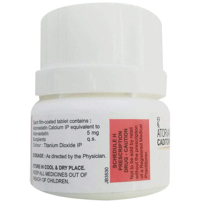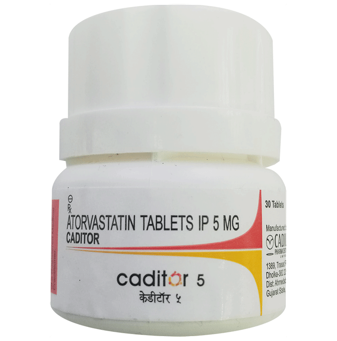 description:Caditor 5 Tablet belongs to a group of medicines called statins. It is used to lower cholesterol and to reduce the risk of heart diseases. Cholesterol is a fatty substance that builds up in your blood vessels and causes narrowing, which may lead to a heart attack or stroke. Caditor 5 Tablet is a widely prescribed medicine and is regarded as safe for long-term use when taken as per the doctor’s advice. It can be taken with a meal or on an empty stomach. You can take it at any time of the day but try to take it at about the same time each day. Most people with high cholesterol do not feel ill, but stopping your medicine may increase your cholesterol levels thereby increasing your risk of heart disease and stroke.It is important to have your cholesterol levels checked regularly. This medicine is only one part of the treatment program which should also include a healthy diet, regular exercise, smoking cessation, moderation of alcohol intake, and weight reduction. You can eat normally while taking this medicine, but try to avoid foods that are high in fat. Common side effects of this medicine include constipation, flatulence, dyspepsia, and abdominal pain. These are usually mild and disappear after a short time. Consult your doctor if they persist or if you notice any yellowing of your eyes or get repeated or unexplained muscle pains. This medicine should not be used in some conditions such as liver disease. Also, pregnant women and breastfeeding mothers should not take this medicine as it may harm the developing baby. Diabetic patients should monitor their blood sugar levels while taking this medicine, as it may lead to an increase in blood sugar levels. Your doctor may check your liver function before starting the treatment and monitor it regularly thereafter.