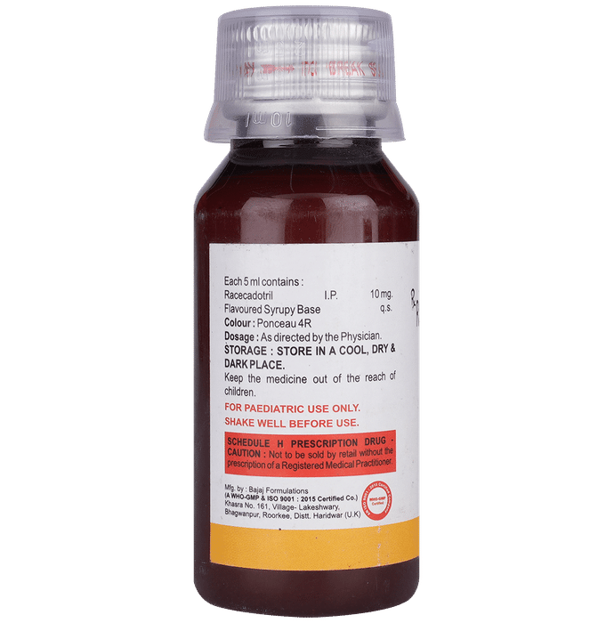 Marketer:Omenta Pharma Pvt Ltd,Composition:Racecadotril (10mg/5ml), medicine_typedrugs,Packaging Detail:bottle of 60 ml Suspension,          Package:Bottle,Qty:60 ml,Product Form:Suspension, prescription_required:Prescription Required,primary_use: