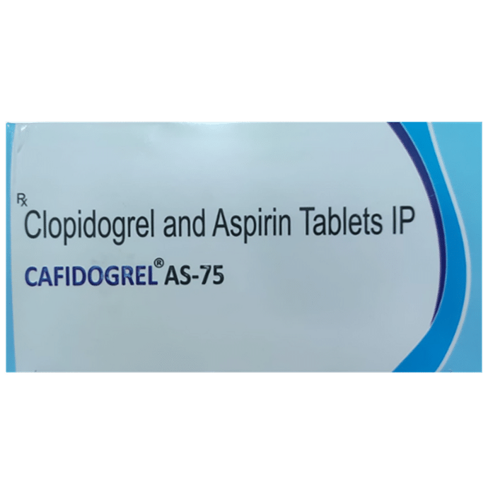 description:Cafidogrel AS 75 Tablet is a combination of two antiplatelet medicines or blood thinner used to reduce the formation of harmful blood clots in blood vessels. It is used to prevent a heart attack or stroke in people with heart disease. It is also used to treat acute coronary syndrome (ACS). Cafidogrel AS 75 Tablet should be taken with food regularly at a fixed time each day. You should take it regularly at evenly spaced intervals as per the schedule prescribed by your doctor. Taking it at the same time every day will help you remember to take it. The dose and duration of treatment will depend on what you are being treated for. Do not stop taking it until you have finished the complete course, even when you feel better. Lifestyle changes like low-fat diet, exercise and not smoking may help this medicine to work better.Common side effects of this medicine include indigestion, bruising, and nosebleeds. This medicine increases your risk of bleeding, so it is important to be careful while shaving, cutting nails and using sharp objects. Usually, it is advisable to avoid alcohol intake while taking this medicine.Before taking this medicine, tell your doctor if you have any liver or kidney disease. You must tell your doctor if you are pregnant, planning pregnancy or breastfeeding. You should also let your healthcare team know all other medicines you are taking as they may affect, or be affected by this medicine.
