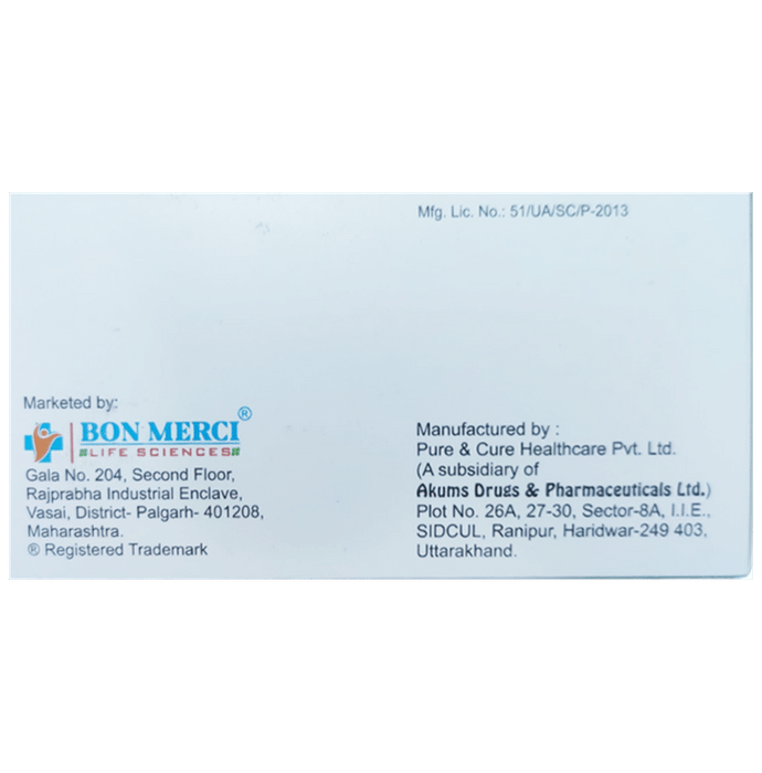 Manufacturer details:,                                                                     Marketer details:Bon Merci Life Sciences | Gala No.204, Second Floor, Rajprabha Industrial Enclave, Vasai, District- Palgarh, Maharashtra-401208,