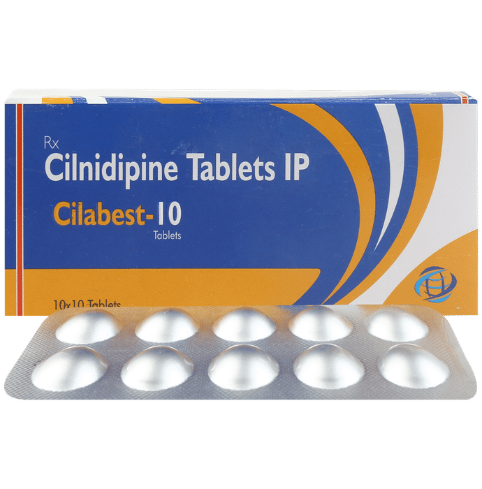 Cilabest 10mg Tablet is a medicine used to treat high blood pressure (hypertension). It belongs to a class of medicines known as a calcium channel blocker which helps to lower blood pressure. This helps prevent heart attacks and strokes. It may also be prescribed to prevent angina (heart-related chest pain). Cilabest 10mg Tablet may be prescribed alone or along with other medicines. The dose depends on the severity of your condition. You can take it at any time of day, with or without food, but it is best to take it at the same time each day. Keep taking it for as long as advised by your doctor. Do not stop this medicine on your own, even if you feel well because high blood pressure often has no symptoms. This makes it hard to identify any sudden spike and if you stop taking it, your condition may get worse.Keeping active with regular exercise, reducing your weight, and eating a healthy diet will also help control your blood pressure. Follow your doctor’s advice while taking this medicine.The most common side effects include fatigue, edema (swelling in the feet), sleepiness, dizziness, flushing, unusual beating of the heart (palpitations), and headache. Consult your doctor if any of these bother you, or do not go away. Side effects like swelling in the feet or ankles and palpitations are lesser in severity than other similar medicines of the group. Studies have shown that it also has a protective effect on the kidneys.Before taking it, let your doctor know if you have any liver, kidney, or heart problems. Pregnant or breastfeeding women should also consult their doctor for advice before taking this medicine. You also need to tell your doctor what other medicines you are taking, especially those used to treat high blood pressure or heart conditions. You should have your blood pressure checked regularly to make sure that this medicine is working properly.