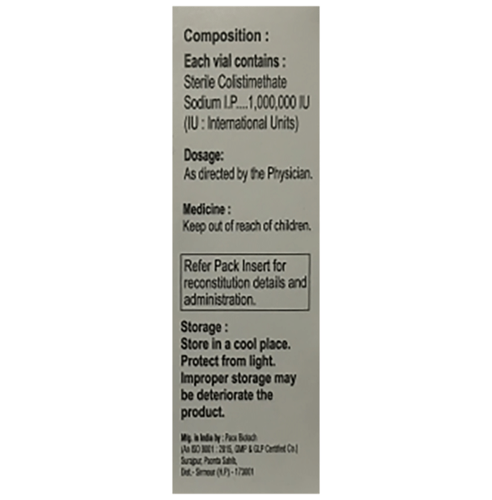 Clarmate 1MIU Injection is an antibiotic that fights bacteria. It is used to treat severe bacterial infections of the body. It is commonly used for critically ill patients admitted to the hospital. Clarmate 1MIU Injection is given under the supervision of a healthcare professional. You should not self-administer this medicine at home. The dose and duration will be decided by your doctor based on the severity and type of infection you have. Get the injection regularly for as long as your doctor has prescribed to get maximum benefits.Common side effects of this medicine include gastrointestinal upset, slurred speech, dizziness, vertigo, fever, rash, and paresthesia. These side effects are usually temporary and go away during treatment as your body adjusts to the medicine. Consult your doctor if these side effects bother you or do not go away.Before starting treatment with this medicine, you should tell the doctor if you are allergic to any antibiotic or have any liver or kidney problems. Pregnant or breastfeeding mothers should consult their doctor before using it. Your doctor may get regular blood tests done to monitor kidney function and the level of the medicine in your blood.