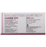 Clavam 375 Tablet is an antibiotic that helps your body fight infections caused by bacteria. It is used to treat infections of the lungs (e.g., pneumonia), ear, nasal sinus, urinary tract, skin, and soft tissue. It will not work for viral infections such as the common cold. Clavam 375 Tablet is best taken with a meal to reduce the chance of a stomach upset. You should take it regularly at evenly spaced intervals as per the schedule prescribed by your doctor. Taking it at the same time daily will help you remember to take it. The dose will depend on what you are being treated for, but you should always complete an entire course of this antibiotic as your doctor prescribes. Please do not stop taking it until you have finished, even when you feel better. If you stop taking it early, some bacteria may survive, and the infection may return or worsen.The most common side effects of Clavam 375 Tablet include nausea, diarrhea, vomiting, fungal infections of the mouth, skin fold or vagina, skin rashes, and vaginitis. These are usually mild, but let your doctor know if they bother you or will not go away.Before taking it, let your doctor know if you are allergic to any antibiotics or have kidney or liver problems. You should also inform your healthcare team about all other medicines you are taking as they may affect or be affected by Clavam 375 Tablet. This medicine is generally considered safe to use during pregnancy and breastfeeding if prescribed by a doctor.