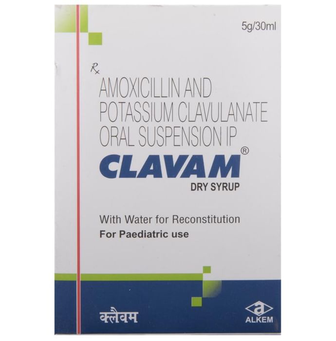 Clavam Dry Syrup is an antibiotic medicine that helps treat bacterial infections of the ear, nose, throat, chest, lungs, teeth, skin, and urinary tract. It is capable of killing bacteria that have become resistant to other therapies and thus also helps treat tuberculosis that is resistant to other treatments. You can give Clavam Dry Syrup to your child with or without food. It is better to give it with food as that helps increase absorption and decrease the risk of stomach upset. The doctor may prescribe giving it two to three times a day. Medicine dose depends on the severity of the infection, its type, and your child’s body weight and age. So, stick to the dose, time, and way prescribed. If your child vomits the medicine within 30 minutes of intake, let the child calm down and repeat the dose. Do not double dose if it’s the time for the next dose.Clavam Dry Syrup may cause vomiting, diarrhea, nausea, abdominal pain, dark colored urine, and allergy. These side effects should diminish on their own. But, in case they persist or start bothering your child, you must not delay speaking to your child’s doctor.Share your child’s entire medical history with the doctor, including any previous episode of allergy, heart problem, blood disorder, birth defects, airway obstruction, lung anomaly, gastrointestinal problem, skin disorder, liver impairment, and kidney malfunction. This information will assist the doctor in making dose alterations and for planning your child’s overall treatment.