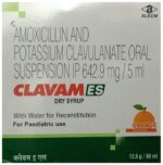 Clavam ES Dry Syrup Orange is an antibiotic that helps your body fight infections caused by bacteria. It is used to treat infections of the lungs (e.g., pneumonia), ear, nasal sinus, urinary tract, skin, and soft tissue. It will not work for viral infections such as the common cold. Clavam ES Dry Syrup Orange is best taken with a meal to reduce the chance of a stomach upset. You should take it regularly at evenly spaced intervals as per the schedule prescribed by your doctor. Taking it at the same time daily will help you remember to take it. The dose will depend on what you are being treated for, but you should always complete an entire course of this antibiotic as your doctor prescribes. Please do not stop taking it until you have finished, even when you feel better. If you stop taking it early, some bacteria may survive, and the infection may return or worsen.The most common side effects of Clavam ES Dry Syrup Orange include nausea, diarrhea, vomiting, fungal infections of the mouth, skin fold or vagina, skin rashes, and vaginitis. These are usually mild, but let your doctor know if they bother you or will not go away.Before taking it, let your doctor know if you are allergic to any antibiotics or have kidney or liver problems. You should also inform your healthcare team about all other medicines you are taking as they may affect or be affected by Clavam ES Dry Syrup Orange. This medicine is generally considered safe to use during pregnancy and breastfeeding if prescribed by a doctor.