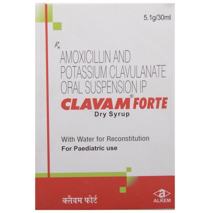 Clavam Forte Dry Syrup is an antibiotic medicine that helps treat bacterial infections of the ear, nose, throat, chest, lungs, teeth, skin, and urinary tract. It is capable of killing bacteria that have become resistant to other therapies and thus also helps treat tuberculosis that is resistant to other treatments. You can give Clavam Forte Dry Syrup to your child with or without food. It is better to give it with food as that helps increase absorption and decrease the risk of stomach upset. The doctor may prescribe giving it two to three times a day. Medicine dose depends on the severity of the infection, its type, and your child’s body weight and age. So, stick to the dose, time, and way prescribed. If your child vomits the medicine within 30 minutes of intake, let the child calm down and repeat the dose. Do not double dose if it’s the time for the next dose.Clavam Forte Dry Syrup may cause vomiting, diarrhea, nausea, abdominal pain, and allergy. These side effects should diminish on their own. But, in case they persist or start bothering your child, you must not delay speaking to your child’s doctor.Share your child’s entire medical history with the doctor, including any previous episode of allergy, heart problem, blood disorder, birth defects, airway obstruction, lung anomaly, gastrointestinal problem, skin disorder, liver impairment, and kidney malfunction. This information will assist the doctor in making dose alterations and for planning your child’s overall treatment.