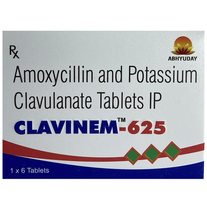 Clavinem 625 Tablet is an antibiotic that helps your body fight infections caused by bacteria. It is used to treat infections of the lungs (e.g., pneumonia), ear, nasal sinus, urinary tract, skin, and soft tissue. It will not work for viral infections such as the common cold. Clavinem 625 Tablet is best taken with a meal to reduce the chance of a stomach upset. You should take it regularly at evenly spaced intervals as per the schedule prescribed by your doctor. Taking it at the same time daily will help you remember to take it. The dose will depend on what you are being treated for, but you should always complete an entire course of this antibiotic as your doctor prescribes. Please do not stop taking it until you have finished, even when you feel better. If you stop taking it early, some bacteria may survive, and the infection may return or worsen.The most common side effects of Clavinem 625 Tablet include nausea, diarrhea, vomiting, fungal infections of the mouth, skin fold or vagina, skin rashes, and vaginitis. These are usually mild, but let your doctor know if they bother you or will not go away.Before taking it, let your doctor know if you are allergic to any antibiotics or have kidney or liver problems. You should also inform your healthcare team about all other medicines you are taking as they may affect or be affected by Clavinem 625 Tablet. This medicine is generally considered safe to use during pregnancy and breastfeeding if prescribed by a doctor.