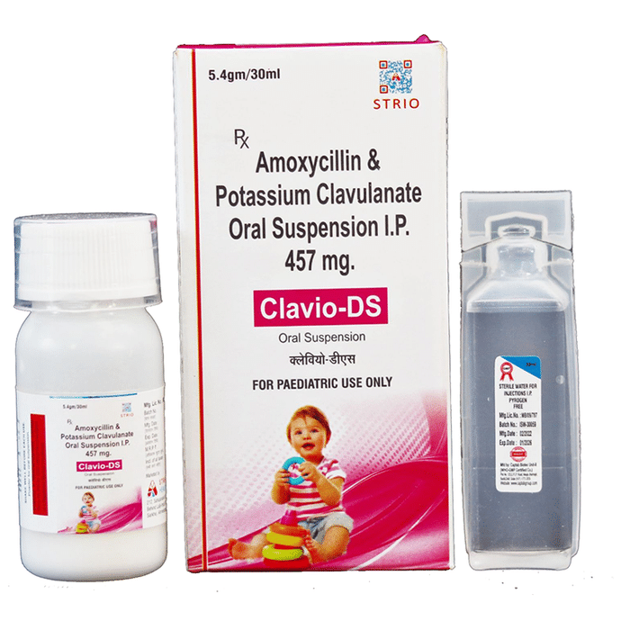 Clavio-DS Oral Suspension is an antibiotic medicine that helps treat bacterial infections of the ear, nose, throat, chest, lungs, teeth, skin, and urinary tract. It is capable of killing bacteria that have become resistant to other therapies and thus also helps treat tuberculosis that is resistant to other treatments. You can give Clavio-DS Oral Suspension to your child with or without food. It is better to give it with food as that helps increase absorption and decrease the risk of stomach upset. The doctor may prescribe giving it two to three times a day. Medicine dose depends on the severity of the infection, its type, and your child’s body weight and age. So, stick to the dose, time, and way prescribed. If your child vomits the medicine within 30 minutes of intake, let the child calm down and repeat the dose. Do not double dose if it’s the time for the next dose.Clavio-DS Oral Suspension may cause vomiting, diarrhea, nausea, abdominal pain, and allergy. These side effects should diminish on their own. But, in case they persist or start bothering your child, you must not delay speaking to your child’s doctor.Share your child’s entire medical history with the doctor, including any previous episode of allergy, heart problem, blood disorder, birth defects, airway obstruction, lung anomaly, gastrointestinal problem, skin disorder, liver impairment, and kidney malfunction. This information will assist the doctor in making dose alterations and for planning your child’s overall treatment.