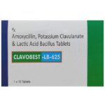 Clavobest-LB 625 Tablet is a combination medicine that is used to treat various types of bacterial infections. It fights against the microorganisms to prevent their growth and further spread of the infection. It also prevents diarrhea which may occur as side effect of this medicine. Clavobest-LB 625 Tablet is a prescription medicine. It is advised to take it as per the prescription. It can be taken with or without food, but it must be taken at a fixed time to ensure better efficacy. Do not consume more than the recommended dose, as this may have harmful effects on your body. If you miss a dose, take it as soon as you remember. The course of the treatment must be completed even if you feel better. Sudden discontinuation of the treatment may affect the potency of the medicine.Some common side effects of this medicine are nausea, vomiting, diarrhea, indigestion, etc. If any of the side effects get aggravated, you must consult your doctor immediately. If you experience any allergic reaction (rashes, itching, swelling, shortness of breath, etc.), you must seek immediate medical help.Before taking this medicine, you should tell your doctor if you are taking any medicines for any health condition. Pregnant or breastfeeding women should also consult with their doctor before taking it. Avoid drinking alcohol as it can cause excessive drowsiness with this medicine. It usually does not impair your ability to drive, but you should not drive if it makes you feel sleepy or dizzy. You must take adequate rest for a faster recovery, also take a healthy diet and drink plenty of water. Your doctor may ask for a few laboratory and diagnostic tests to know the effects of the medicine on your body.
