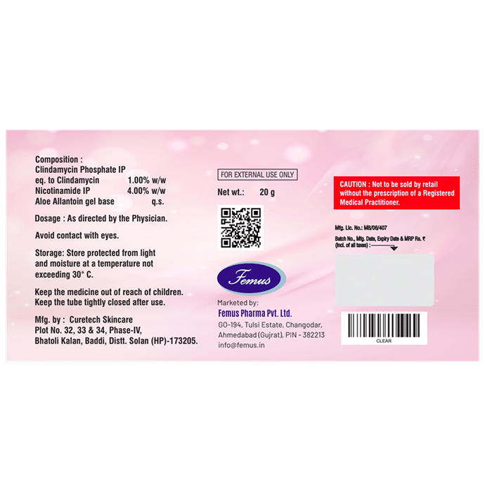 Clear & Clear Gel is a combination medicine that is used to treats acne. It minimizes excessive oil production, thus reduces inflammation. It also prevents the growth of the microorganisms that cause acne. This also helps to prevent pimples, blackheads, and whiteheads on the skin. Clear & Clear Gel is only meant for external use and should be used as advised by your doctor. A thin layer of the medicine should be applied only to the affected areas of the skin with clean and dry hands. Wash your hands before and after applying the medicine. If it gets into your eyes, nose, mouth, or vagina rinse with water. It may take several days to weeks for your symptoms to improve, but you should keep using this medicine regularly. The course of the treatment should be completed to ensure better efficacy of the medicine. If your condition does not improve or gets worse, you should talk to your doctor.This is usually a safe medicine, however, it may cause dryness, peeling, redness, and burning sensation at the application site. These side effects are usually mild and self-limiting. Most of these side effects can be prevented by using a skin moisturizer and drinking plenty of water. Serious side effects are rare. You must consult the doctor if you experience any allergic reaction (rashes, itching, swelling, shortness of breath, etc.).Before using this medicine, it is important to tell your doctor if you are taking or have recently taken any other medicines for the same disease or other diseases. Pregnant and breastfeeding women should use this medicine with proper consultation and caution. If you are a known allergic to the medicine, you must refrain from using this medicine and consult your doctor. During the course of the treatment, do not touch, prick or scratch the infected skin areas as this may worsen or spread the acne. Avoid unnecessary sun exposure and use a sunscreen before stepping out in the sun. It is also advised, not to receive any cosmetic procedures without asking your doctor.