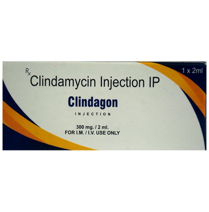 Clindagon Injection is an antibiotic medicine that fights bacteria and is used to treat a wide variety of bacterial infections. It is effective in infections of the lungs (eg. pneumonia), stomach, skin & soft tissues, bones & joints, blood, and heart. Clindagon Injection works by stopping the growth of bacteria. This helps to improve your symptoms and cure the underlying infection. It is given as a drip (intravenous infusion) or as an injection directly into a vein or a muscle under the supervision of a healthcare professional. Your doctor will decide the correct dose for you. You should use this medicine regularly at evenly spaced intervals as per the schedule prescribed by your doctor. Do not skip any doses and finish the full course of treatment even if you feel better. Stopping the medicine too early may lead to the infection returning or worsening.The most common side effects of this medicine include pseudomembranous colitis, diarrhea, abdominal pain, maculopapular rash, thrombophlebitis, and abnormal liver function test. Some people may develop temporary redness or pain at the site of injection; these are usually mild but let your doctor know if they bother you or do not go away.Before using it, you should tell your doctor if you have any liver or kidney problems, if you have any problems with your bowels (intestines) or if you have ever had bloody diarrhea caused by taking antibiotics. You should also let your healthcare team know all other medicines you are taking as they may affect, or be affected by this medicine. Pregnant and breastfeeding mothers should consult their doctor before using it.