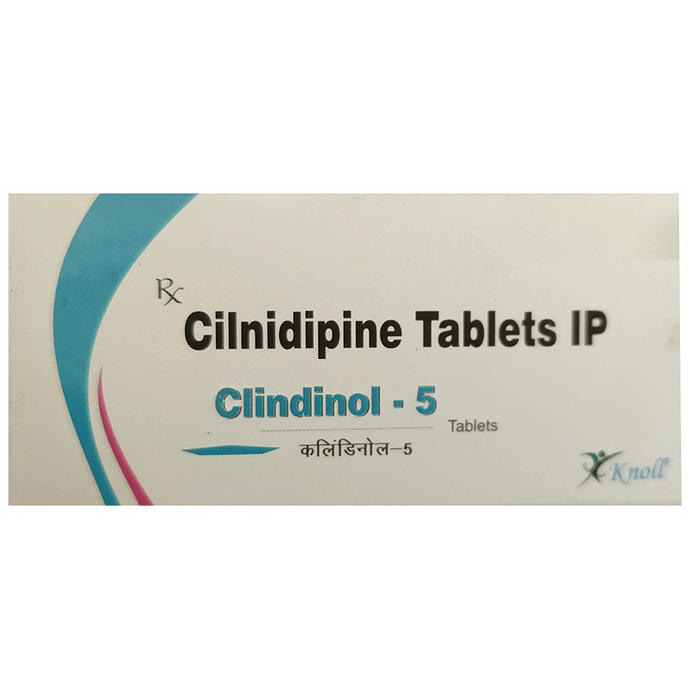 Clindinol 5 Tablet is a medicine used to treat high blood pressure (hypertension). It belongs to a class of medicines known as a calcium channel blocker which helps to lower blood pressure. This helps prevent heart attacks and strokes. It may also be prescribed to prevent angina (heart-related chest pain). Clindinol 5 Tablet may be prescribed alone or along with other medicines. The dose depends on the severity of your condition. You can take it at any time of day, with or without food, but it is best to take it at the same time each day. Keep taking it for as long as advised by your doctor. Do not stop this medicine on your own, even if you feel well because high blood pressure often has no symptoms. This makes it hard to identify any sudden spike and if you stop taking it, your condition may get worse.Keeping active with regular exercise, reducing your weight, and eating a healthy diet will also help control your blood pressure. Follow your doctor’s advice while taking this medicine.The most common side effects include fatigue, edema (swelling in the feet), sleepiness, dizziness, flushing, unusual beating of the heart (palpitations), and headache. Consult your doctor if any of these bother you, or do not go away. Side effects like swelling in the feet or ankles and palpitations are lesser in severity than other similar medicines of the group. Studies have shown that it also has a protective effect on the kidneys.Before taking it, let your doctor know if you have any liver, kidney, or heart problems. Pregnant or breastfeeding women should also consult their doctor for advice before taking this medicine. You also need to tell your doctor what other medicines you are taking, especially those used to treat high blood pressure or heart conditions. You should have your blood pressure checked regularly to make sure that this medicine is working properly.