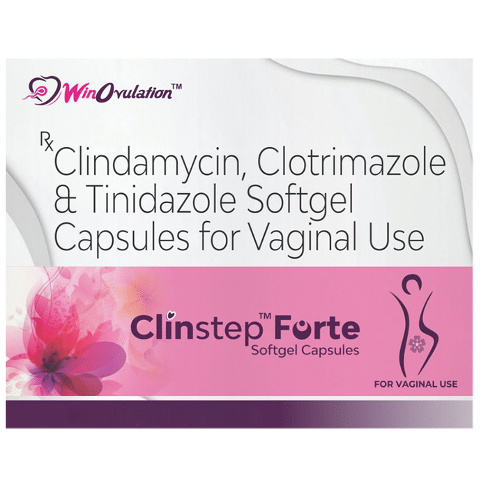 Clinstep Forte Softgel Capsule is a combination medicine that is used for the syndromic treatment of vaginal discharge. It fights against infection by stopping the growth of infection-causing microorganisms. It also prevents the further spread of the infection. Clinstep Forte Softgel Capsule is to be used as per the label instructions or as suggested by your doctor. This medicine is only for vaginal application. You must wash your hands before and after using it. It is best to use this at bedtime regularly to get the most benefit. If there is any accidental exposure of the medicine to the eyes or mouth, you must wash immediately. For better efficacy of the medicine, the course of the treatment should be completed even if you feel better. Do not use it more than the recommended dose.Clinstep Forte Softgel Capsule leads to a few common side effects like frequrent urination or mild irritation and burning sensation at the application site. If these side effects do not improve with time or worsen, inform your doctor. In case of any allergic reactions (rashes, itching, swelling, shortness of breath, etc.), it is advised to call for immediate medical help.Before using it, tell your doctor if you have an underlying disease or are taking medicines for any health condition. The medicines that are used externally usually do not get affected by other medicines, however, you should let your doctor know if you are taking any medicines to ensure safety. Ask your doctor for advice if you are pregnant or breastfeeding. If you are a known allergic to the medicine, you must refrain from using this medicine and consult your doctor. During the course of the treatment, you must follow proper personal hygiene for a faster recovery.