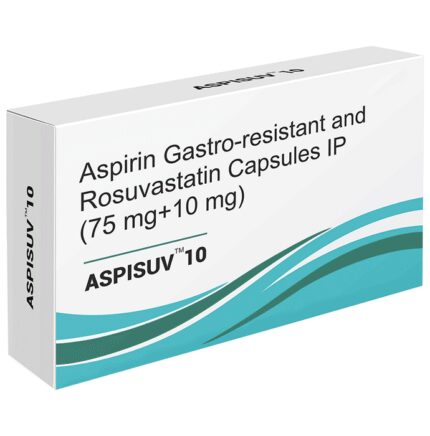 In Treatment of Prevention of heart attack and stroke Aspisuv 10 Capsule is a combination medicine that is used to prevent heart attack. It contains rosuvastatin that works by reducing the amount of “bad” cholesterol (LDL) and raising the amount of “good” cholesterol (HDL) in blood. High levels of cholesterol can cause narrowing of the blood vessels (atherosclerosis). Lowering the amount of cholesterol reduces the chances of heart diseases and stroke and helps one remain healthier for longer. u003cbr>u003cbr>Aspisuv 10 Capsule also contains a blood thinner, aspirin, that prevents the formation of blood clots and the existing ones from growing bigger in size. Take it regularly and make appropriate lifestyle changes (such as eating healthy and staying active) to maximize the effectiveness of this medicine. Keep taking it even if you feel well.