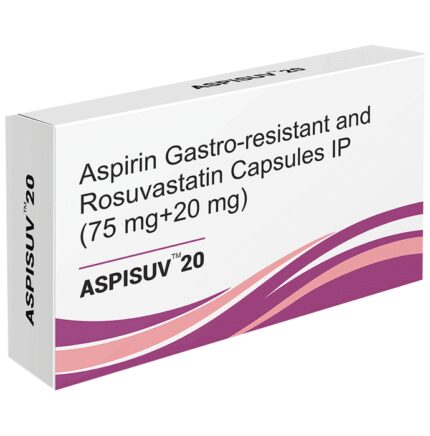 In Treatment of Prevention of heart attack and stroke Aspisuv 20 Capsule is a combination medicine that is used to prevent heart attack. It contains rosuvastatin that works by reducing the amount of “bad” cholesterol (LDL) and raising the amount of “good” cholesterol (HDL) in blood. High levels of cholesterol can cause narrowing of the blood vessels (atherosclerosis). Lowering the amount of cholesterol reduces the chances of heart diseases and stroke and helps one remain healthier for longer. u003cbr>u003cbr>Aspisuv 20 Capsule also contains a blood thinner, aspirin, that prevents the formation of blood clots and the existing ones from growing bigger in size. Take it regularly and make appropriate lifestyle changes (such as eating healthy and staying active) to maximize the effectiveness of this medicine. Keep taking it even if you feel well.
