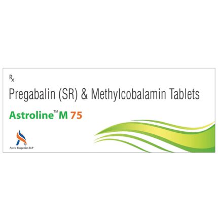In Treatment of Neuropathic pain Astroline M 75 Tablet SR is a combination of medicines used to treat long-lasting (chronic) pain caused by nerve damage due to diabetes, shingles or spinal cord injury. It reduces pain and its associated symptoms such as mood changes, sleep problems, and tiredness. Pregabalin, an active ingredient of this medicine, is thought to work by interfering with pain signals that travel through the damaged nerves and the brain. It also contains nutritional supplements that improve nerve conduction. Taking Astroline M 75 Tablet SR regularly will improve your physical and social functioning and overall quality of life.