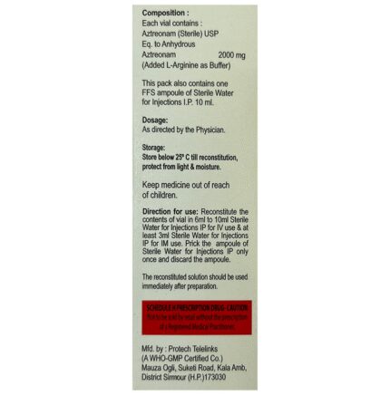 In Severe bacterial infections Astrom 2 gm Injection works by killing bacteria which can cause serious infections. It is used to treat many different types of bacterial infections such as infections of lungs (pneumonia), blood, brain, ear, skin, and soft tissue, abdomen, bone, windpipe and urinary tract. It is given by a doctor or nurse into a vein and should not be self-administered. Astrom 2 gm Injection usually makes you feel better very quickly but you should continue taking it as prescribed even when you feel better to make sure that all bacteria are killed and do not become resistant.