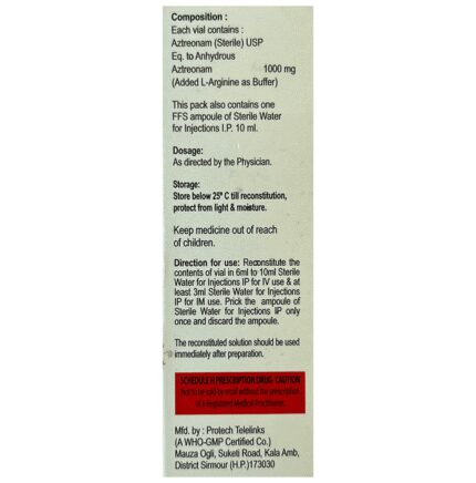 In Severe bacterial infections Astrom Injection works by killing bacteria which can cause serious infections. It is used to treat many different types of bacterial infections such as infections of lungs (pneumonia), blood, brain, ear, skin, and soft tissue, abdomen, bone, windpipe and urinary tract. It is given by a doctor or nurse into a vein and should not be self-administered. Astrom Injection usually makes you feel better very quickly but you should continue taking it as prescribed even when you feel better to make sure that all bacteria are killed and do not become resistant.