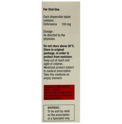 In Treatment of Iron overload Iron overload, as the name suggests, means excess of iron in the human body. Too much iron can cause organ damage, which can lead to conditions such as cancer, irregular heartbeat and cirrhosis of the liver. Symptoms are related to conditions that arise from iron overload such as high blood sugar levels (diabetes), darkening of the skin, abnormal heart rhythm or arthritis. By using Asunra 100mg Tablet, this excess of iron can be decreased to safe levels by removing it from the body through stools. This helps to reduce the risk of organ damage and prevents further complications. Take Asunra 100mg Tablet as prescribed by the doctor to get the maximum benefit.