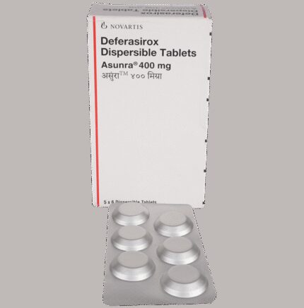 In Treatment of Iron overload Iron overload, as the name suggests, means excess of iron in the human body. Too much iron can cause organ damage, which can lead to conditions such as cancer, irregular heartbeat and cirrhosis of the liver. Symptoms are related to conditions that arise from iron overload such as high blood sugar levels (diabetes), darkening of the skin, abnormal heart rhythm or arthritis. By using Asunra 400mg Tablet DT, this excess of iron can be decreased to safe levels by removing it from the body through stools. This helps to reduce the risk of organ damage and prevents further complications. Take Asunra 400mg Tablet DT as prescribed by the doctor to get the maximum benefit.