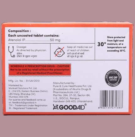 In Treatment of Angina (heart-related chest pain) Ateaid 50 Tablet relaxes the blood vessels so that blood can flow more easily around your body and makes sure that your heart is getting a good supply of oxygen. This makes it less likely that you will suffer chest pain caused by angina. This medicine can help increase your ability to exercise and go about your daily life more easily by reducing the frequency of angina attacks. You should take it regularly and as long as it is prescribed for it to work effectively.