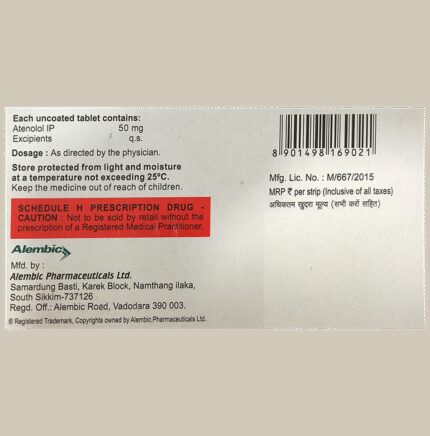 In Treatment of Hypertension (high blood pressure) Atecard M 5 mg/50 mg Tabcap is a combination medicine that contains two active ingredients, Amlodipine and Atenolol. Both of the medicines in this combination work to lower blood pressure but in different ways. Together they help to relax blood vessels, reduce heart rate and make it easier for your heart to pump blood around your body. This lowers blood pressure. u003cbr>u003cbr>If your blood pressure is controlled you are less at risk of having a heart attack, stroke or kidney problems. The medicine must be taken regularly as prescribed to be effective. You do not usually feel any direct benefit from taking this medicine, but it works in the long term to keep you well. You should also make appropriate lifestyle changes (such as eating healthy and staying active) to maximize the effectiveness of this medicine.