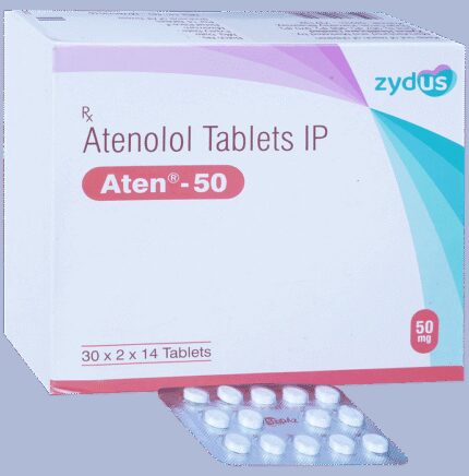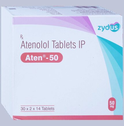 In Treatment of Angina (heart-related chest pain) Aten 50 Tablet relaxes the blood vessels so that blood can flow more easily around your body and makes sure that your heart is getting a good supply of oxygen. This makes it less likely that you will suffer chest pain caused by angina. This medicine can help increase your ability to exercise and go about your daily life more easily by reducing the frequency of angina attacks. You should take it regularly and as long as it is prescribed for it to work effectively.