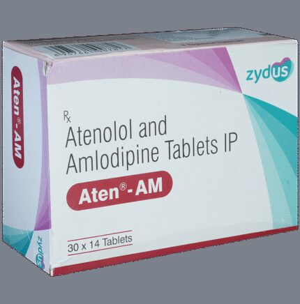 In Treatment of Hypertension (high blood pressure) Aten AM Tablet is a combination medicine that contains two active ingredients, Amlodipine and Atenolol. Both of the medicines in this combination work to lower blood pressure but in different ways. Together they help to relax blood vessels, reduce heart rate and make it easier for your heart to pump blood around your body. This lowers blood pressure. u003cbr>u003cbr>If your blood pressure is controlled you are less at risk of having a heart attack, stroke or kidney problems. The medicine must be taken regularly as prescribed to be effective. You do not usually feel any direct benefit from taking this medicine, but it works in the long term to keep you well. You should also make appropriate lifestyle changes (such as eating healthy and staying active) to maximize the effectiveness of this medicine.