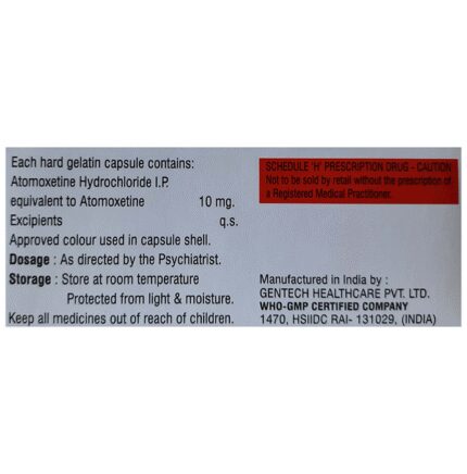 In Attention deficit hyperactivity disorder (ADHD) Attention deficit hyperactivity disorder (ADHD) is a disorder that makes a person impulsive, restless, creates difficulty in concentrating or paying attention, and leads to behavioral issues. Atexitine 10 Capsule helps you improve these symptoms, making you more alert, energetic, and focused. It is the most effective medicine for treating ADHD. It improves your behavior and enhances the quality of life.