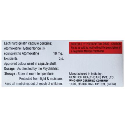 In Attention deficit hyperactivity disorder (ADHD) Attention deficit hyperactivity disorder (ADHD) is a disorder that makes a person impulsive, restless, creates difficulty in concentrating or paying attention, and leads to behavioral issues. Atexitine 18 Capsule helps you improve these symptoms, making you more alert, energetic, and focused. It is the most effective medicine for treating ADHD. It improves your behavior and enhances the quality of life.