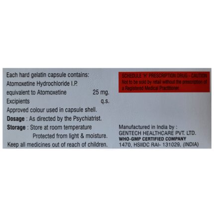 In Attention deficit hyperactivity disorder (ADHD) Attention deficit hyperactivity disorder (ADHD) is a disorder that makes a person impulsive, restless, creates difficulty in concentrating or paying attention, and leads to behavioral issues. Atexitine 25 Capsule helps you improve these symptoms, making you more alert, energetic, and focused. It is the most effective medicine for treating ADHD. It improves your behavior and enhances the quality of life.