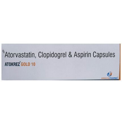 In Prevention of Heart attack Atokrez Gold 10 Capsule is a combination medicine that is used to prevent heart attack. It contains Atorvastatin that works by reducing the amount of “bad” cholesterol (LDL) and raising the amount of “good” cholesterol (HDL) in your blood. High levels of cholesterol can cause your blood vessels to narrow (atherosclerosis). Lowering the amount of cholesterol reduces the chances of heart diseases and helps you remain healthier for longer.u003cbr>u003cbr>Besides, it also contains two blood thinners, Aspirin and Clopidogrel, that together prevent the formation of blood clots and also prevent the existing ones from growing bigger in size. Take it regularly and make appropriate lifestyle changes (such as eating healthy and staying active) to maximize the effectiveness of this medicine. Keep taking it even if you feel well.