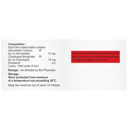 In Heart attack prevention and high cholesterol Atorfib C 10mg/75mg Tablet is a combination medicine that is used to prevent heart attack. It contains Atorvastatin that works by reducing the amount of “bad” cholesterol (LDL) and raising the amount of “good” cholesterol (HDL) in your blood. High levels of cholesterol can cause your blood vessels to narrow (atherosclerosis). Lowering the amount of cholesterol reduces the chances of heart diseases and helps you remain healthier for longer. u003cbr>Besides, it also contains a blood thinner, Clopidogrel, that prevents the formation of blood clots and also prevents the existing ones from growing bigger in size. Take it regularly and make appropriate lifestyle changes (such as eating healthy and staying active) to maximize the effectiveness of this medicine. Keep taking it even if you feel well.