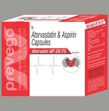 In Treatment of Prevention of heart attack and stroke Atorvatin AP 20/75 Capsule is a combination medicine that is used to prevent heart attack. It contains Atorvastatin that works by reducing the amount of “bad” cholesterol (LDL) and raising the amount of “good” cholesterol (HDL) in your blood. High levels of cholesterol can cause your blood vessels to narrow (atherosclerosis). Lowering the amount of cholesterol reduces the chances of heart diseases and stroke and helps you remain healthier for longer. u003cbr>u003cbr>Besides, it also contains a blood thinner, Aspirin, that prevents the formation of blood clots and also prevents the existing ones from growing bigger in size. Take it regularly and make appropriate lifestyle changes (such as eating healthy and staying active) to maximize the effectiveness of this medicine. Keep taking it even if you feel well.