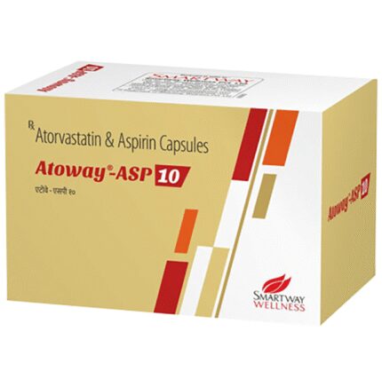 In Treatment of Prevention of heart attack and stroke Atoway-ASP 10 Capsule is a combination medicine that is used to prevent heart attack. It contains Atorvastatin that works by reducing the amount of “bad” cholesterol (LDL) and raising the amount of “good” cholesterol (HDL) in your blood. High levels of cholesterol can cause your blood vessels to narrow (atherosclerosis). Lowering the amount of cholesterol reduces the chances of heart diseases and stroke and helps you remain healthier for longer. u003cbr>u003cbr>Besides, it also contains a blood thinner, Aspirin, that prevents the formation of blood clots and also prevents the existing ones from growing bigger in size. Take it regularly and make appropriate lifestyle changes (such as eating healthy and staying active) to maximize the effectiveness of this medicine. Keep taking it even if you feel well.