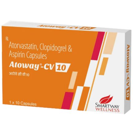 In Prevention of Heart attack Atoway-CV 10 Capsule is a combination medicine that is used to prevent heart attack. It contains Atorvastatin that works by reducing the amount of “bad” cholesterol (LDL) and raising the amount of “good” cholesterol (HDL) in your blood. High levels of cholesterol can cause your blood vessels to narrow (atherosclerosis). Lowering the amount of cholesterol reduces the chances of heart diseases and helps you remain healthier for longer.u003cbr>u003cbr>Besides, it also contains two blood thinners, Aspirin and Clopidogrel, that together prevent the formation of blood clots and also prevent the existing ones from growing bigger in size. Take it regularly and make appropriate lifestyle changes (such as eating healthy and staying active) to maximize the effectiveness of this medicine. Keep taking it even if you feel well.