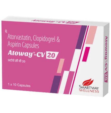 In Prevention of Heart attack Atoway-CV 20 Capsule is a combination medicine that is used to prevent heart attack. It contains Atorvastatin that works by reducing the amount of “bad” cholesterol (LDL) and raising the amount of “good” cholesterol (HDL) in your blood. High levels of cholesterol can cause your blood vessels to narrow (atherosclerosis). Lowering the amount of cholesterol reduces the chances of heart diseases and helps you remain healthier for longer.u003cbr>u003cbr>Besides, it also contains two blood thinners, Aspirin and Clopidogrel, that together prevent the formation of blood clots and also prevent the existing ones from growing bigger in size. Take it regularly and make appropriate lifestyle changes (such as eating healthy and staying active) to maximize the effectiveness of this medicine. Keep taking it even if you feel well.