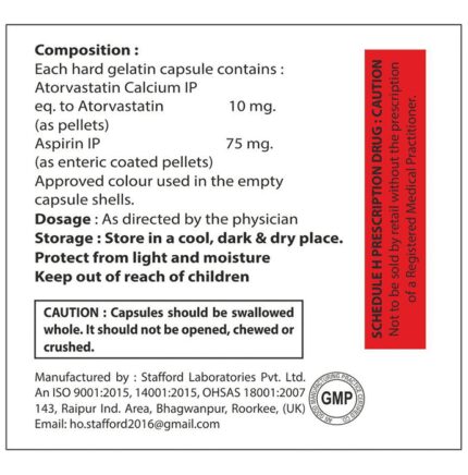 In Treatment of Prevention of heart attack and stroke Atromend-AS 20/75 Capsule is a combination medicine that is used to prevent heart attack. It contains Atorvastatin that works by reducing the amount of “bad” cholesterol (LDL) and raising the amount of “good” cholesterol (HDL) in your blood. High levels of cholesterol can cause your blood vessels to narrow (atherosclerosis). Lowering the amount of cholesterol reduces the chances of heart diseases and stroke and helps you remain healthier for longer. u003cbr>u003cbr>Besides, it also contains a blood thinner, Aspirin, that prevents the formation of blood clots and also prevents the existing ones from growing bigger in size. Take it regularly and make appropriate lifestyle changes (such as eating healthy and staying active) to maximize the effectiveness of this medicine. Keep taking it even if you feel well.