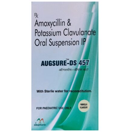 In Treatment of Bacterial infections Augsure-DS 457 Oral Suspension Vanilla contains two medicines, Amoxycillin and Clavulanic Acid, that work together to kill the bacteria that cause infections. Amoxycillin works by stopping the growth of bacteria. Clavulanic Acid reduces resistance and enhances the activity of Amoxycillin against bacteria.u003cbr>Augsure-DS 457 Oral Suspension Vanilla can treat many bacterial infections such as ear, sinus, throat, lung, urinary tract, skin, teeth, joints, and bones. It usually makes you feel better within a few days, but you should continue taking it as prescribed even when you feel better to ensure all bacteria are killed and do not become resistant.