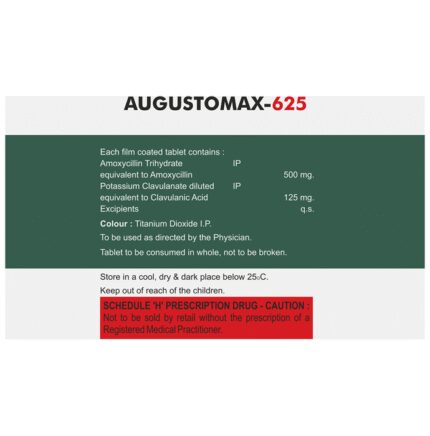 In Treatment of Bacterial infections Augustomax 625 Tablet contains two medicines, Amoxycillin and Clavulanic Acid, that work together to kill the bacteria that cause infections. Amoxycillin works by stopping the growth of bacteria. Clavulanic Acid reduces resistance and enhances the activity of Amoxycillin against bacteria.u003cbr>Augustomax 625 Tablet can treat many bacterial infections such as ear, sinus, throat, lung, urinary tract, skin, teeth, joints, and bones. It usually makes you feel better within a few days, but you should continue taking it as prescribed even when you feel better to ensure all bacteria are killed and do not become resistant.