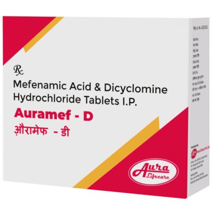 In Treatment of Menstrual pain Auramef-D Tablet is a combination medicine that helps reduce pain and cramps during periods. It stops sudden muscle contractions (spasms) and blocks the release of certain chemical messengers that cause pain and inflammation, thereby relieving cramps, pain, bloating, and discomfort. This medicine does not affect the amount or the duration of menstrual bleeding. Take this medicine as per the dose and duration prescribed by your doctor.