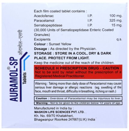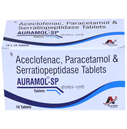In Pain relief Auramol-SP Tablet is a combination medicine used for short-term relief of pain, inflammation, and swelling in conditions affecting joints and muscles. It works by blocking chemical messengers in the brain that tell us we have pain. It can help relieve pain in conditions like rheumatoid arthritis and osteoarthritis. Along with painkillers, this medicine also contains an active ingredient called Serratiopeptidase, which is an enzyme that promotes the overall healing process and speeds up recovery.u003cbr>u003cbr>Take it as it is prescribed to get the most benefit. Do not take more or longer than needed as that can be dangerous. In general, you should take the lowest dose that works, for the shortest possible time. This will help you to go about your daily activities more easily and have a better, more active, quality of life.