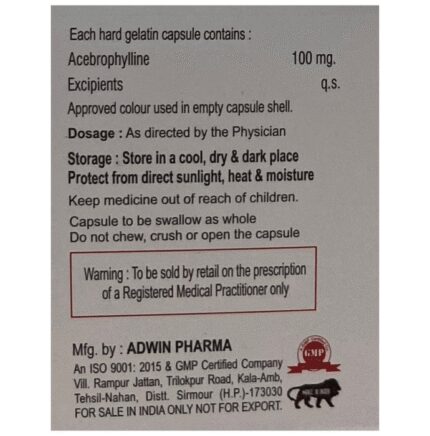 Acekaitiz Capsule is used to treat and prevent symptoms of asthma, bronchitis, and chronic obstructive pulmonary disorder (a lung disorder in which flow of air to the lung is blocked). It helps in relaxing the muscles of the air passages, thus widening it and making it easier to breathe. Acekaitiz Capsule can be taken with the food in evening. Take it at the same time every day to get the most benefit. The dose and how often you take it depends on what you are taking it for. Your doctor will decide how much you need to improve your symptoms. Take this medicine for as long as it is prescribed for you. Do not miss even a single dose, if in any case, you missed a dose, take it as soon as you remember or better to skip the missed dose and continue with regular dosing. It does not work immediately or prevent the already started breathing trouble, hence always carry your medical inhaler with you for an emergency.The most common side effects of this medicine include abdominal discomfort, abdominal distension, vomiting, abdominal pain, diarrhea, constipation, and heart burn. If these bother you or appear serious, let your doctor know. There may be ways of reducing or preventing them. Generally, it is advised not to consume alcohol or do not smoke while on treatment.Before taking this medicine, let your doctor if you have kidney or liver disease or if you have heart-related problems. Your doctor should also know about all other medicines you are taking as many of these may make this medicine less effective or change the way it works. Inform your doctor if you are pregnant or breastfeeding before starting the treatment.